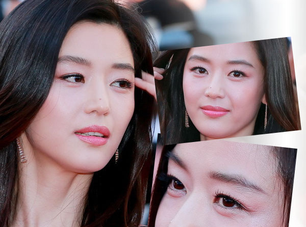 老实说,全智贤这组图的脸部略显发福,并不是画大平眉的料。仔细看这两道眉毛也并不是完全一马平川,眉尾稍有弧度,眉峰也有隐隐的起伏。